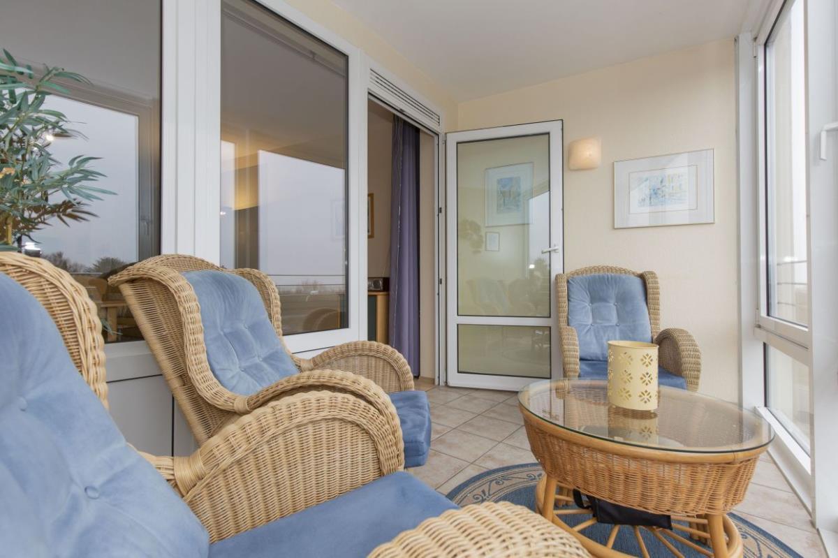 Vom Parkplatz in der Tiefgarage gelangt man barrierefrei mit dem Aufzug direkt zu der Ferienwohnung, die auf 50 m² genügend Platz für bis zu vier Personen bietet. Die helle Wohnung liegt im 2. OG zur Nordost-Seite Richtung Kugelbake.